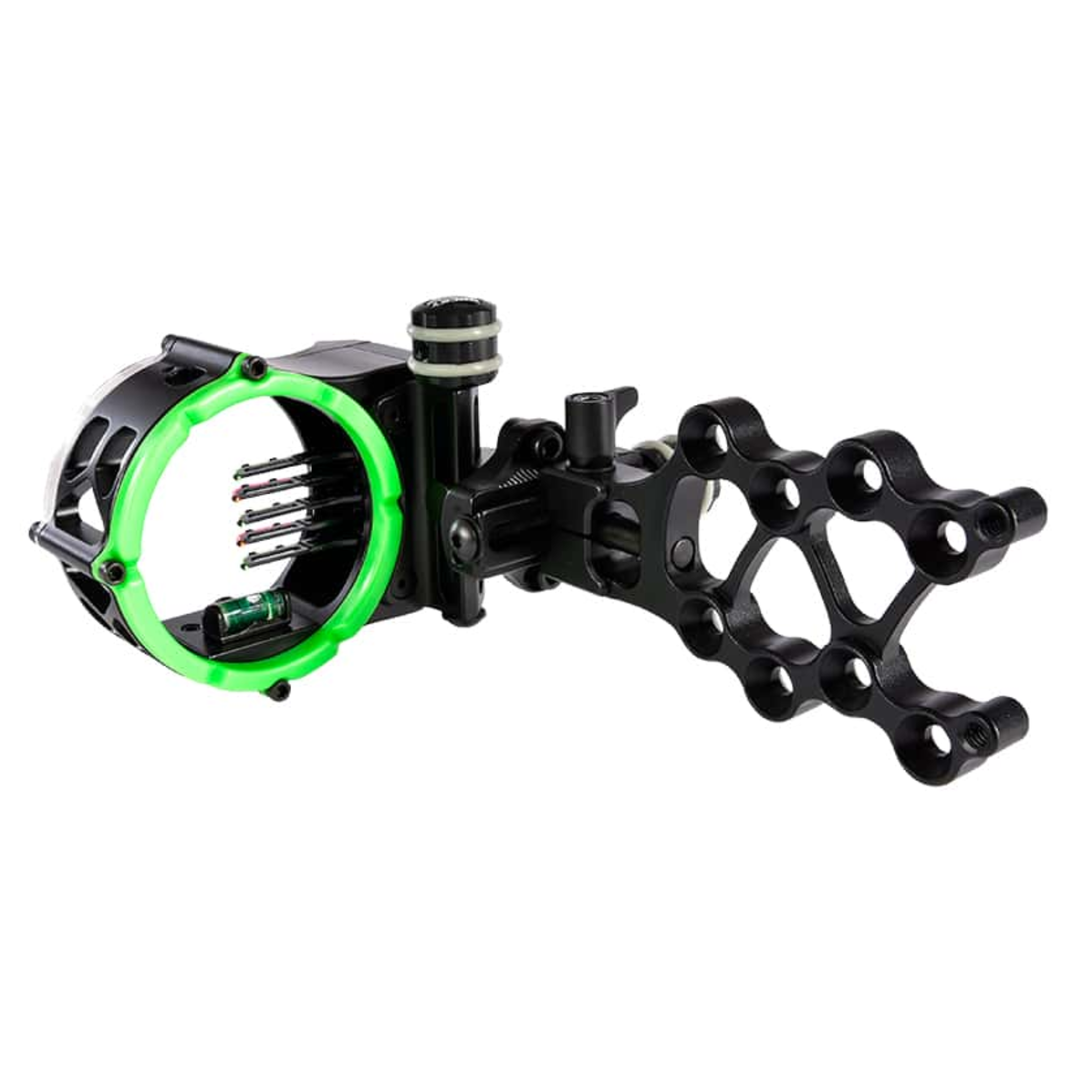The tough, yet ultra-slim pins are 50% thinner for closer pin stack, excellent field of view/sight picture, and easier fiber optic acquisition. Coupled with a dual-track pin retention system —incredibly tight pin stack can be achieved. Each housing features an exchangeable sight ring, sight light compatibility, fiber wrap, and exceptionally bright .019 fiber optic pins.